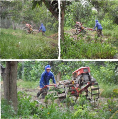 คนงานกำลังไถกลบและปรับพื้นที่หลังจากปลูกข้าวโพดซึ่งได้ทำการเก็บเกี่ยวผลผลิตเป็นที่เรียบร้อย
