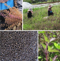แปลงผลิตเมล็ดพันธุ์กะเพรา มีทั้งกะเพราแดง และกะเพราขาว เก็บเมล็ดพันธุ์เรียบร้อยแล้ว
