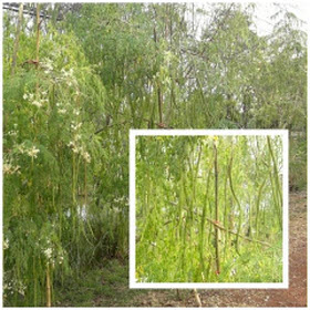 ต้นมะรุมที่กำลังออกผลดกจนต้องคำด้วยไม้ไผ่....