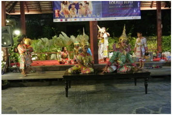 สวัสดีปีใหม่ 2556 โครงการอัมพวา ชัยพัฒนานุรักษ์ วันที่ 29 – 31 ธันวาคม 2555 โครงการอัมพวา ชัยพัฒนานุรักษ์ ได้จัดให้มีกิจกรรมดนตรี และการแสดงส่งท้ายปีเก่าต้อนรับปีใหม่ขึ้น ณ ลานวัฒนธรรมนาคะวะรังค์ และลานการแสดงฝั่งสวนสาธิตการเกษตร โดยมีการแสดงต่างๆ ได้แก่ การแสดงดนตรีไทยของโรงเรียนเทศบาล 3 วัดอัมพวันเจติยาราม การแสดงโขนเยาวชนบ้านแหลมคณะคุ้มครองศิลป์ ศิษย์วัดเขาตระเครา เรื่องรามเกียรติ์ ตอนนางลอย และการแสดงดนตรีจากวงทักษิณาบรรเลง ซึ่งเป็นวงดนตรีที่มีแนวคิดในการผสมผสานความเป็นไทยเข้ากับความเป็นสากล ด้วยการนำเอาเครื่องดนตรีไทยมาบรรเลงผสมกับเครื่องดนตรีสากลได้อย่างลงตัว ทุกชุดการแสดงที่โครงการได้เลือกสรรมานี้ ได้รับความสนใจจากนักท่องเที่ยวเป็นอย่างยิ่ง ด้วยบรรยากาศของเสียงดนตรียามเย็นนั้นเข้ากับบรรยากาศของการเริ่มต้นฤดูหนาว ส่งผลให้พื้นที่บริเวณลานนาคะวะรังค์ และลานการแสดงฝั่งสวนเนืองแน่นไปด้วยผู้ชม รวมทั้งโครงการฯ ยังได้รับคำชมจากนักท่องเที่ยวถึงการอนุรักษ์ศิลปวัฒนธรรมที่โครงการฯ ได้ปลูกฝังให้กับเยาวชน และให้โอกาสในการถ่ายทอดการแสดงเหล่านี้สู่สังคม