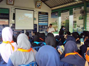 บรรยายภาระกิจของโครงการแก่ผู้เข้าศึกษาดูงานโดยแบ่งเป็น 2 กลุ่ม ระหว่างกลุ่มผู้ชายและกลุ่มผู้หญิง